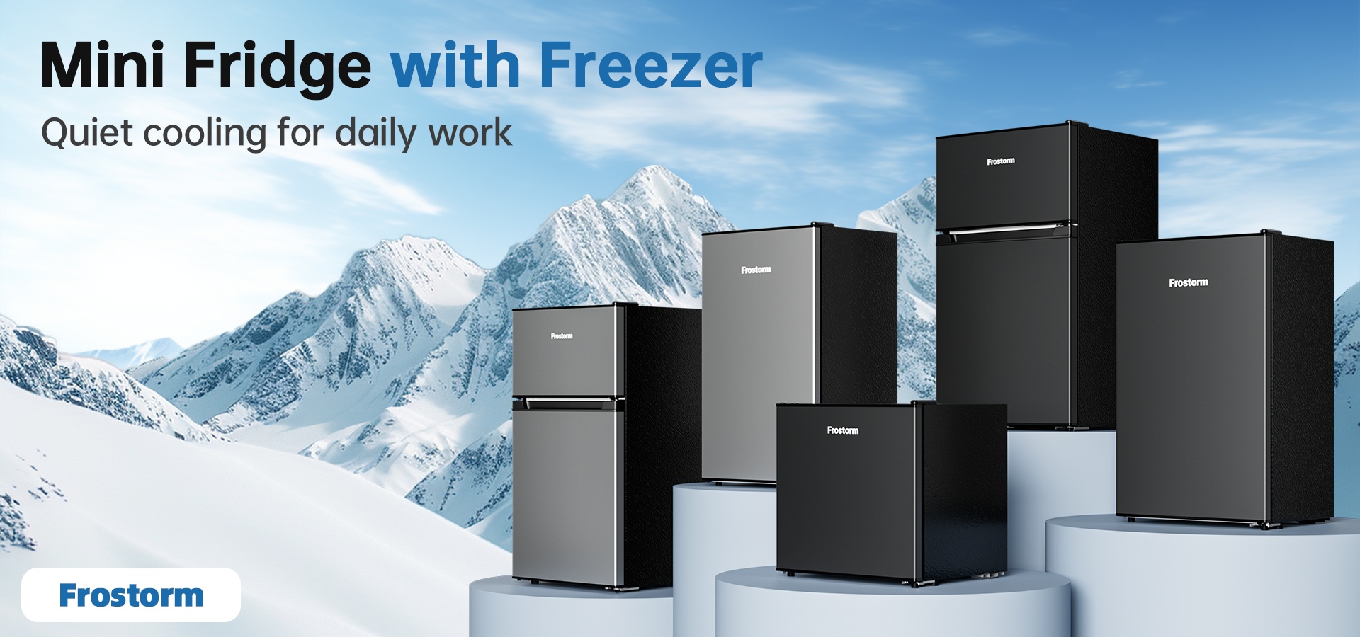 【True Double Door Design with Separate Freezer 】Experience organized cooling with dedicated compartments. This 3.2 cubic feet mini fridge features a full-size freezer (0.95 Cu Ft) for frozen goods and ice, plus a spacious refrigerator (2.25 Cu Ft) for fresh food and drinks—perfect for spaces n..